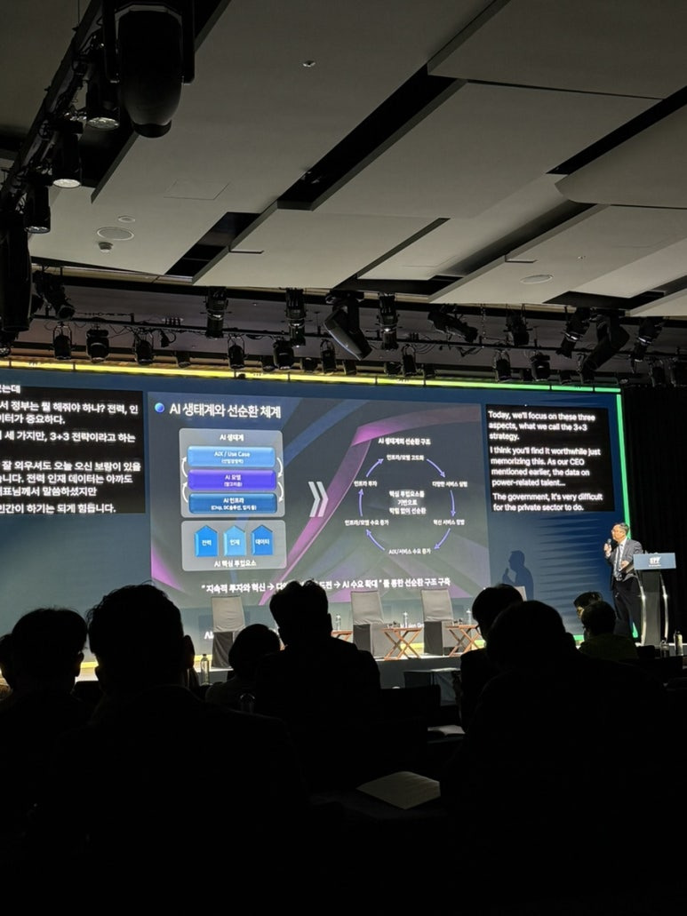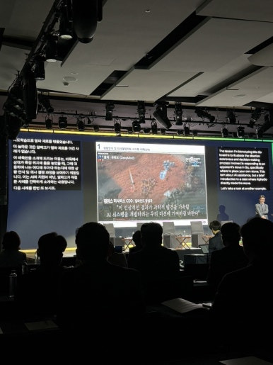 아 그리고 발표가 영어로 진행되었는데, 이전처럼 동시 통역을 통역사가 해주는 것이 아니라 AI로 실시간 통역이 프롬프트로 기입되는 방식이었는데.. 생각 이상으로 반응이 빠르고 정확해서 놀랐음 ㄷㄷ 이것 또한 AI가 바꿔가는 산업의 흐름 아닐까..