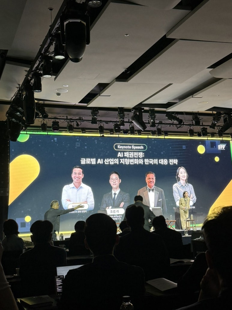 이번 포럼은 AI 패권전쟁 - 지속성장을 위한 한국 기업의 생존 전략과 미래 비전이라는 주제로 진행되었는데, 무엇보다 기조연설에서 쉴드 AI 공동 창업자와 팔란티어의 한국 공공부문 대표님이 나온다는 소식(?)을 듣고 신청한 것이기도 했음 ㅎㅎ 결과적으로 기조연설 뿐 아니라 전체적으로도 굉장히 유익한 포럼이었다!