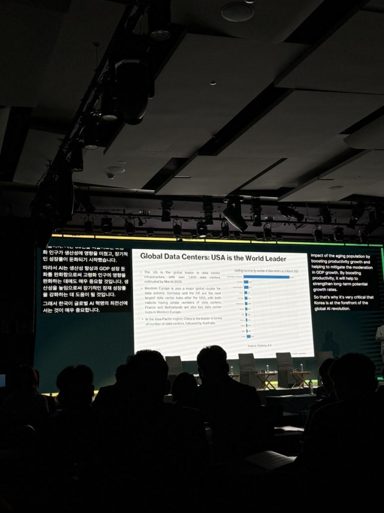 오후에는 데이터 센터 관련한 세션이었다. 내가 요즘 중점적으로 투자하는 기업이 팔란티어와 구글인데, 팔란티어는 AI 소프트웨어의 대표이고 구글은 데이터센터 클라우드 대표 기업이라서 미래 성장동력에 맞는 기업들이라는 생각을 하고 있음. 그런 의미에서 이번 포럼은 굉장히 유익했던 것 같다.