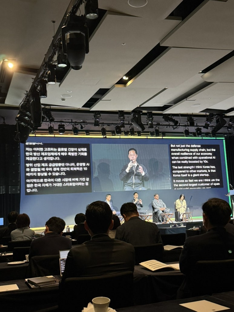 팔란티어의 조셉 리는 최근 고조되는 글로벌 긴장이 한국 방산 업체에게는 매우 특별한 기회를 제공할 수 있으며, 방위산업 공급망뿐 아니라, 운영형 AI와 결합될때 한국 경제 전반의 회복력은 10배 이상 회복할 수 있다고 설명했다.